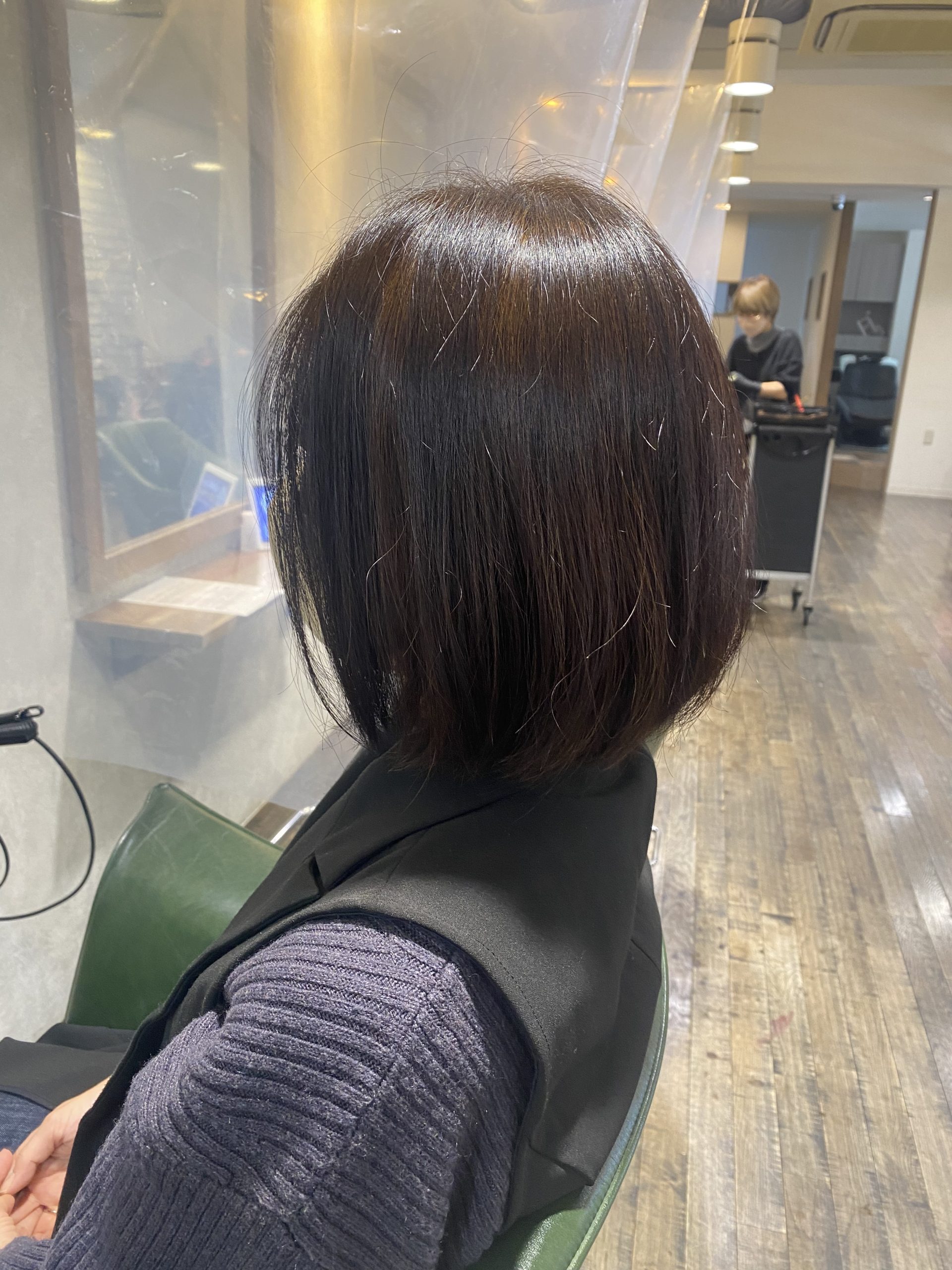 伸ばしたいとの事であまり裾の長さは変えず、シルエットをタイトめなショートヘアに変更。