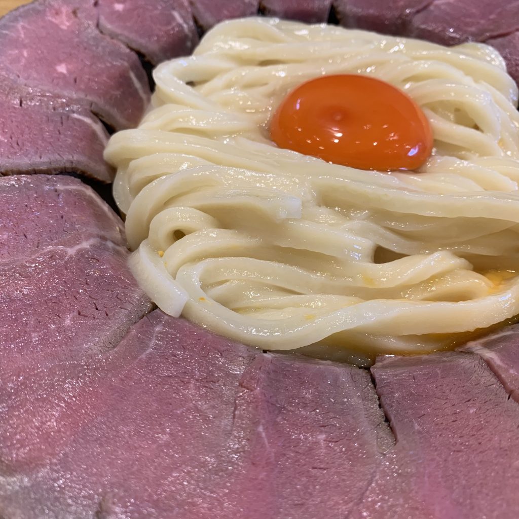 名物の肉釜玉うどんを食べました🍖