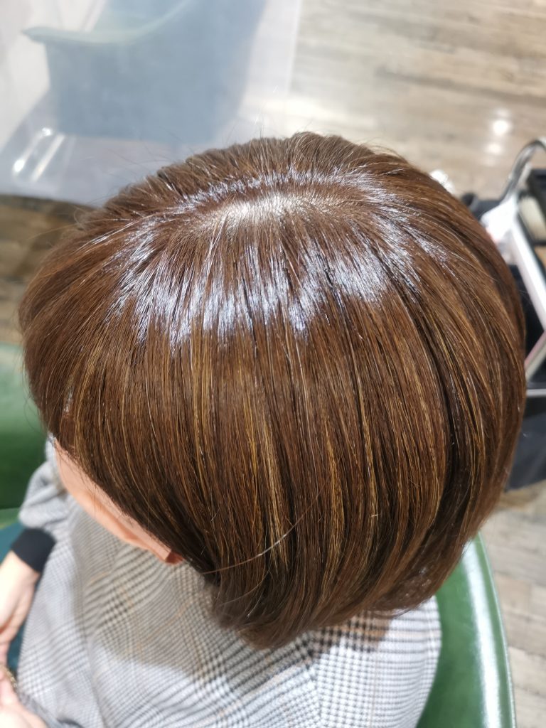 細いハイライトを入れて、表面と特に気にされていた顔周りをカバー!!ブログ画像根本に白髪染めを使用していますが、お好みによってはオシャレ染めで対応可能です!