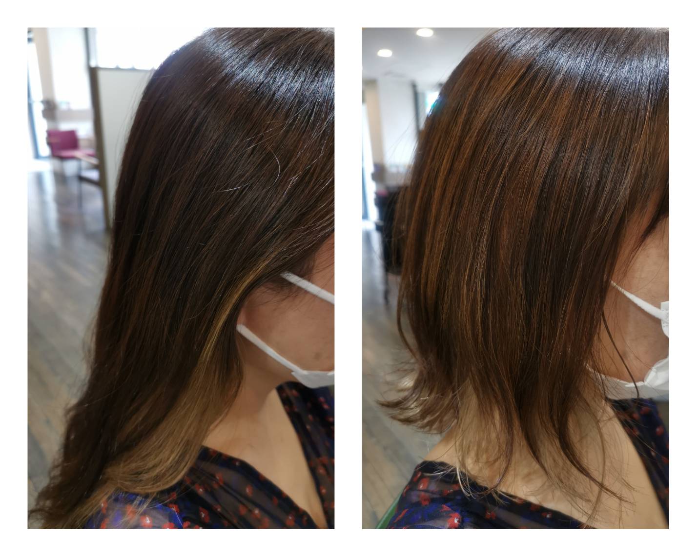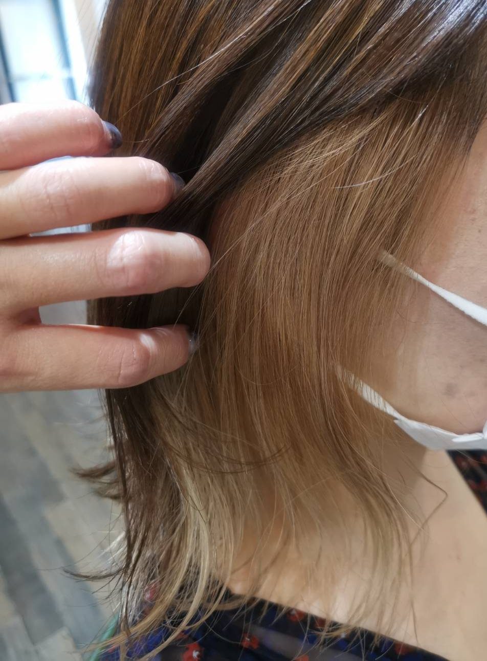 伸ばしながらインナーカラーを楽しんでいらっしゃいました。
