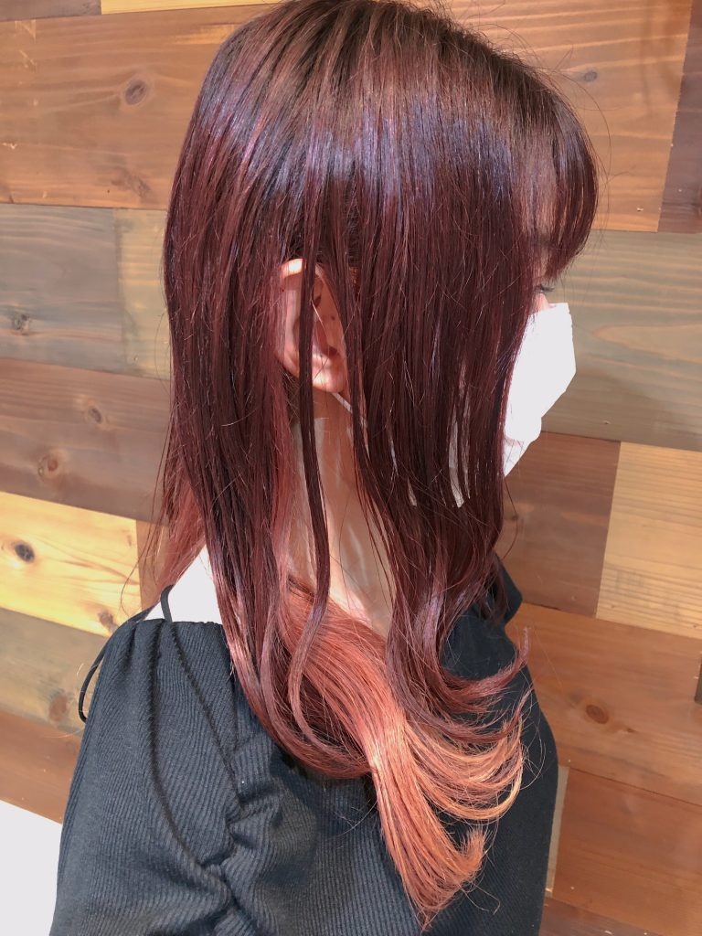 暗めのさくらんぼカラーとインナーカラーを入れました🍒